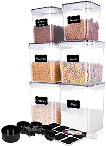 Flour Food Storage Containers / Large food storage containers 5.2l / 176oz, vtopmart 4 pieces bpa free plastic airtight food storage canisters for flour, sugar, baking supplies, with 4 measuring cups and 24 labels, blue 15,444 $23 99
